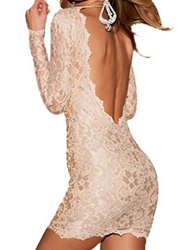 Vestidos Para Mujer Manga Larga Encaje Cuello V-Profundo Busto 90-122cm Color De Piel
