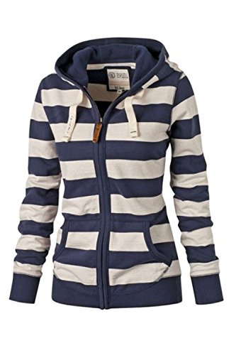 La Mujer Otoño Rayas Manga Larga Pullover Sudadera Capucha Con Cremallera